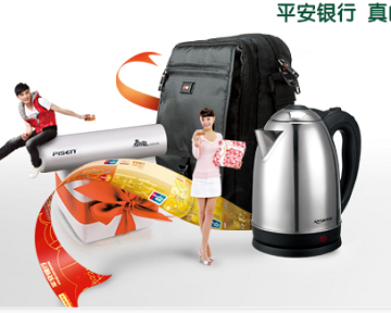 2013.07.01-2014.02.28,成功申办指定平安信用卡,核卡当月起3个月内,POS积分消费或取现满5笔且每笔满88元,即可获赠精美礼品一份。
